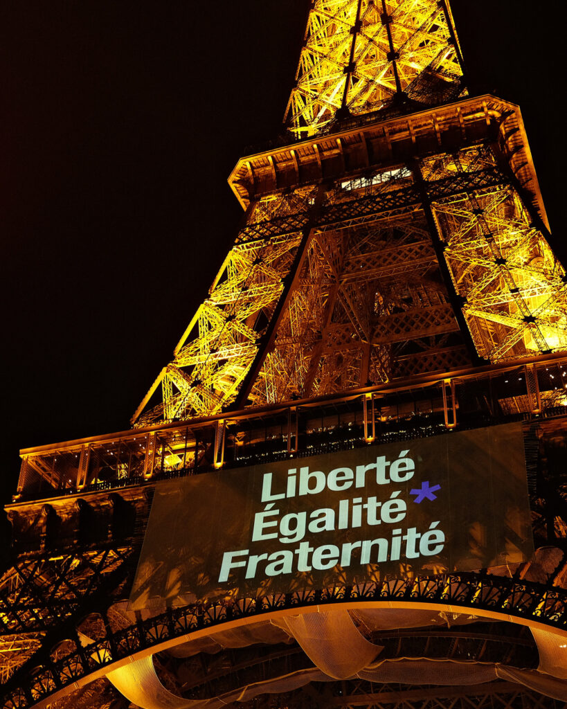 El Ayuntamiento de París decide tocar algo que rara vez se toca: su propio lema. “Liberté, Égalité, Fraternité” aparece intervenido con un asterisco en la palabra igualdad. Un gesto sencillo que introduce una lectura directa: esa igualdad no es plena.